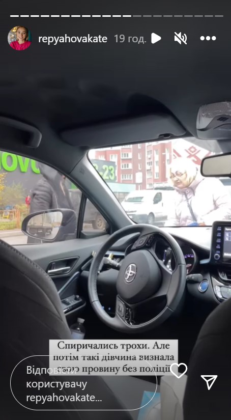 Репяхова отметила, что вторая участница инцидента сразу начала спорить, но впоследствии признала свою вину. Потому они решили вопрос даже без полиции. "Спорили немного, но девушка признала свою вину без полиции", - уточнила жена певца.