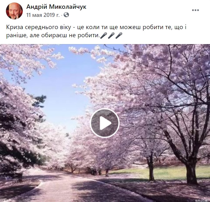В социальных сетях артист не очень активен, иногда делится своими размышления о жизни. Андрей Миколайчук женат, у него есть дочь и внуки, которые живут в Киеве.