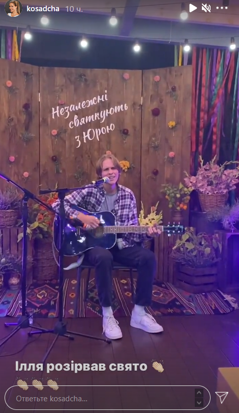 18-летний Илья исполнил для отчима песню под гитару, а также спел дуэтом с Настей Каменских. Знаменитая мама опубликовала в "сториз" кадры с празднования и похвасталась талантами взрослого сына. "Илья разорвал праздник", - отметила Осадчая.