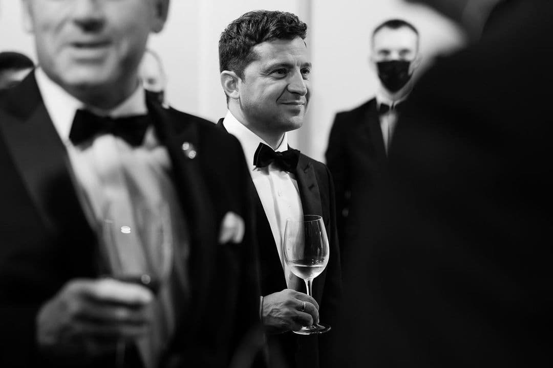 Первая леди опубликовала черно-белое фото, на котором Зеленский на торжественном приеме с улыбкой смотрит в сторону. Она рассказала, что этот взгляд был обращен к ней.