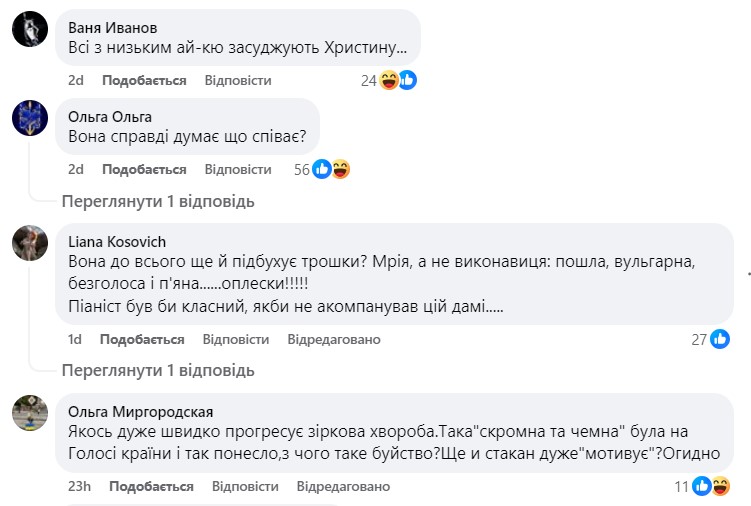 "Без вокала нет бокала. Ох Христя Христя!", "Я тоже так петь умею!))", "Я пьяна лучше пою", - пишут комментаторы.