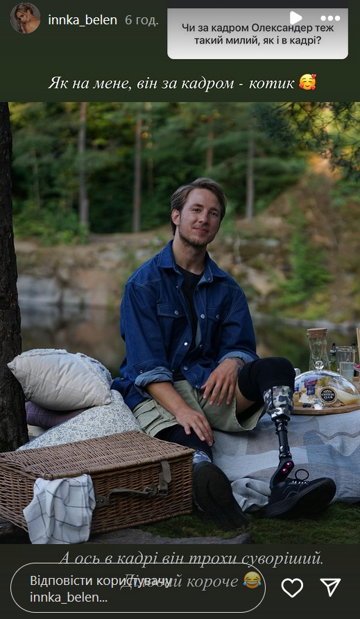 Одна из подписчиц ее Instagram поинтересовалась у волонтерки, такой ли милый Александр вне камер, как его показывают на телеэкранах. "Как по мне, он за кадром - котик, - ответила Инна. - А вот в кадре он немного строже. Деловой короче".