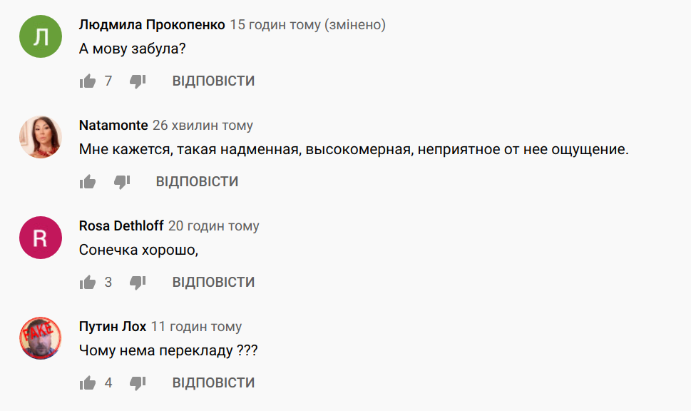 Пользователи сети обратили внимание, что певица отвечала на вопросы Осадчей на русском языке. На фоне ее недавнего выступления в Москве на "Песне года", о котором Ротару умолчала, их критика была особенно острой.