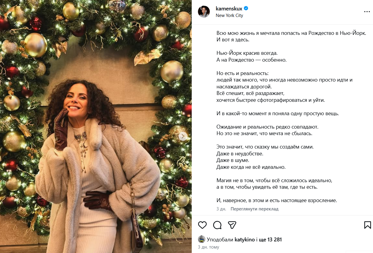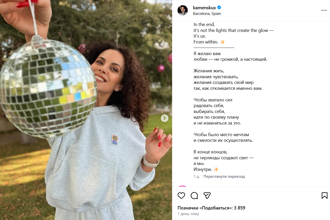 После языкового резонанса артистка некоторое время вела блог в Instagram на испанском, однако недавно на ее странице появились посты на английском с параллельным переводом на русский. Каменских обнародовала фотографии из Нью-Йорка и Барселоны, сопровождая их философскими размышлениями на языке страны-агрессорки.