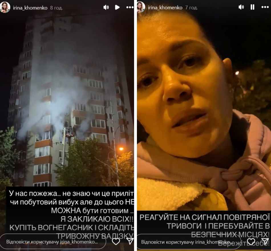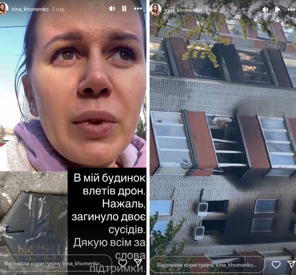 На утро Хоменко снова вышла в "сториз" и подтвердила, что причина пожара в доме - попадание российского беспилотника.