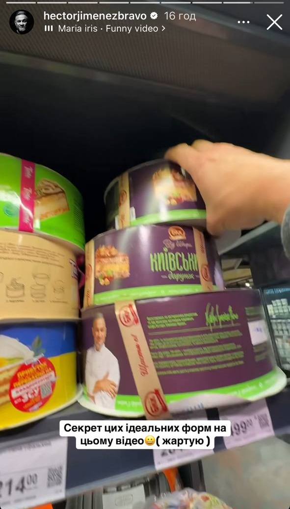 В следующей "истории" Хименес-Браво раскрыл "секрет" своих идеальных форм, показав на шуточном видео, как тянется за тортом со своим изображением.
