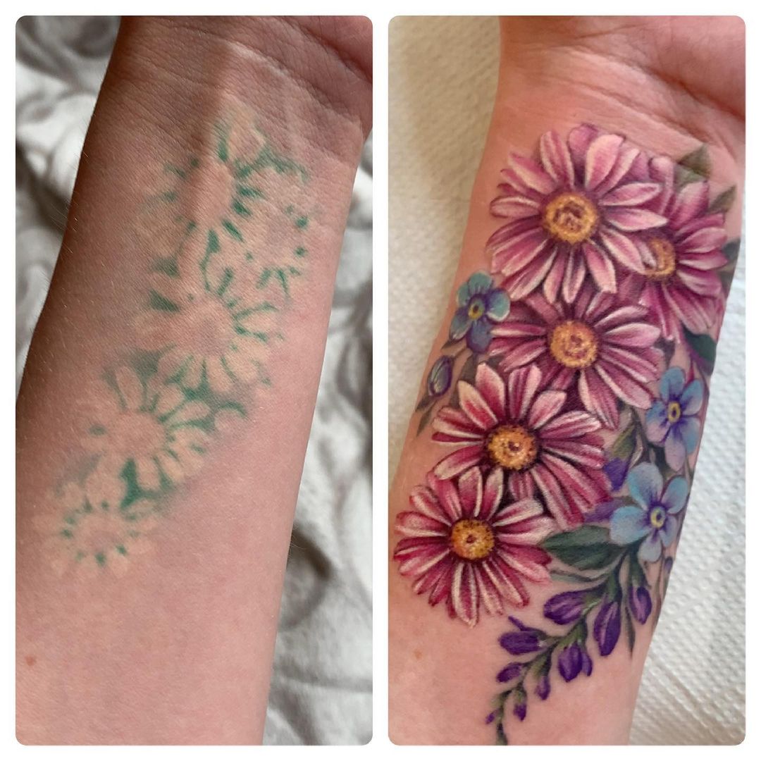 Участница юмористического проекта "Дизель Шоу" Яна Глущенко решила освежить свою цветную татуировку на руке, которая потеряла яркость. Актриса нашла тату-мастера, и после ее работы ромашки не только приобрели насыщенный цвет, но и обзавелись соседями-цветами.