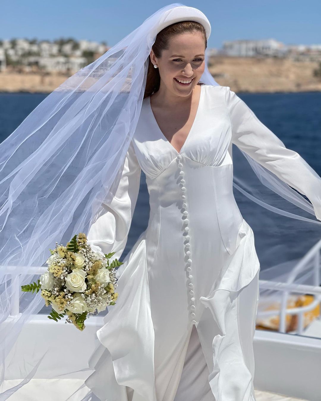 Звезда сериала "Крепостная" Наталка Денисенко отметила четвертую годовщину брака с актером Андреем Фединчиком. Пара устроила символическую свадьбу на борту яхты в Шарм-эш-Шейх, и фото невесты в белоснежном платье и фате очаровали ее поклонников.
