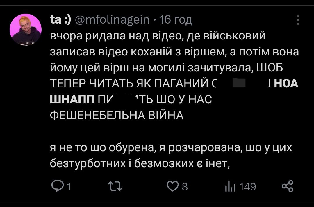 Публикация знаменитости набрала более 700 тысяч лайков, но в соцсетях многих украинцев возмутили его заявления. Войну в Украине он назвал просто "модным поводом", преуменьшив таким образом ее значимость. В настоящее время комментарии к публикации Шнаппа закрыты, потому люди высказывают свое негодование на других площадках, не выбирая цензурных выражений.