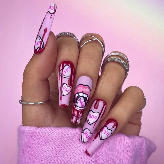 Если вы – обладательница длинных ногтей, тогда на них можно изобразить что угодно. Сердечки, любовные надписи и даже героев из вкладышей про любовь Love is.