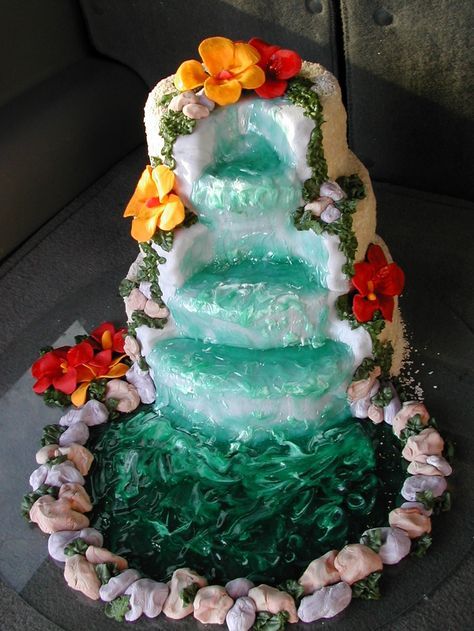 Следующий торт - настоящий шедевр. Этот фонтан из крема, глазури, карамели и сахарной мастики уже больше похож на скульптуру, а не на десерт.