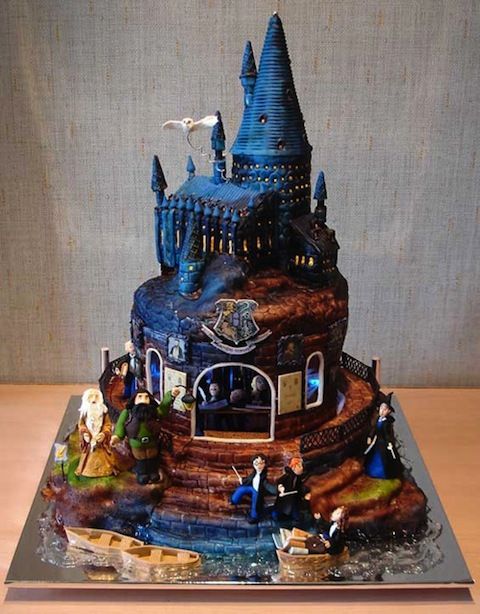 Лучший торт для фанатов Поттерианы - замок школы чародейства и волшебства Хогвартс, возле которого гуляют персонажи знаменитых книг Джоан Роулинг.