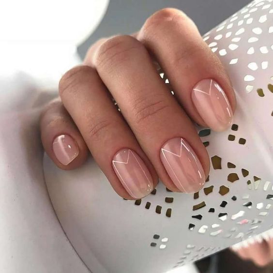 Еще один вариант – нюд. Прозрачное или полупрозрачное покрытие вот уже несколько сезонов пользуется популярностью среди модниц. Более того, вы можете разнообразить его необычными геометрическими фигурами или хаотичными мазками.