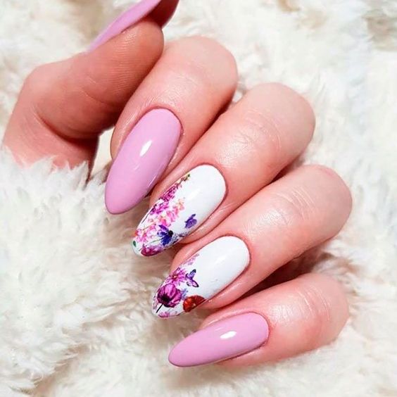 Еще один похожий вариант – нежно-розовый маникюр с цветочными мотивами. Такой вариант придаст вашему образу женственности и элегантности.