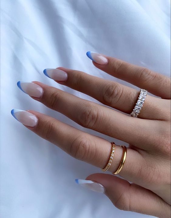 Для тех барышень, которые любят классический френч, советуем сделать его необычную вариацию в бело-голубых цветах.