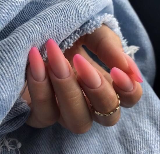 Еще один вариант – градиентный маникюр в бежево-розовых тонах. Такой неброский вариант подойдет как для отпуска, так и для рабочих будней.
