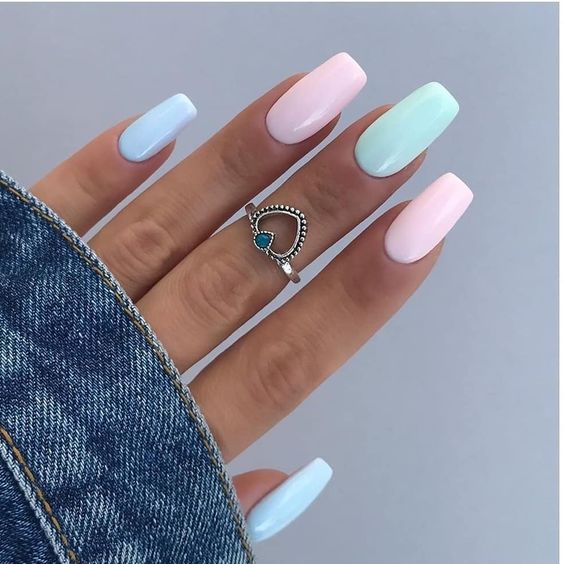А если вы не можете определиться с одним цветом – покройте ногти несколькими цветами в пастельной гамме. Такой маникюр подойдет под любой наряд и мероприятие.