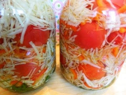 Вкус этой простой и дешевой закуски может удивить всех: помидоры в капусте на зиму это интересная с виду и богатая витаминами заготовка. Более того - вы получите два блюда сразу - вкусные помидоры и салат из капусты.