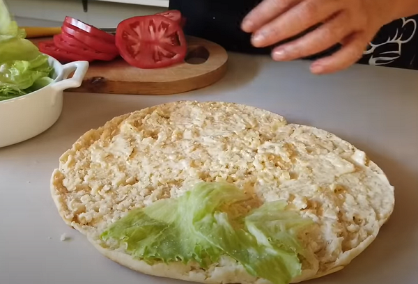 Обжаренный на сковороде корж нужно разрезать пополам, смазать майонезом и добавить ветчину и зелень. Минимум усилий – и вы получите отличный ужин или завтрак.