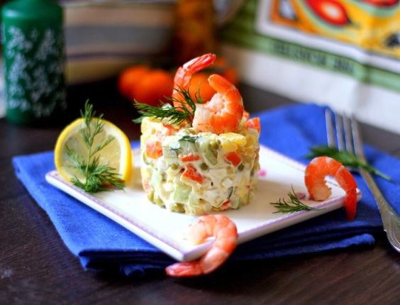 Оливье с креветками