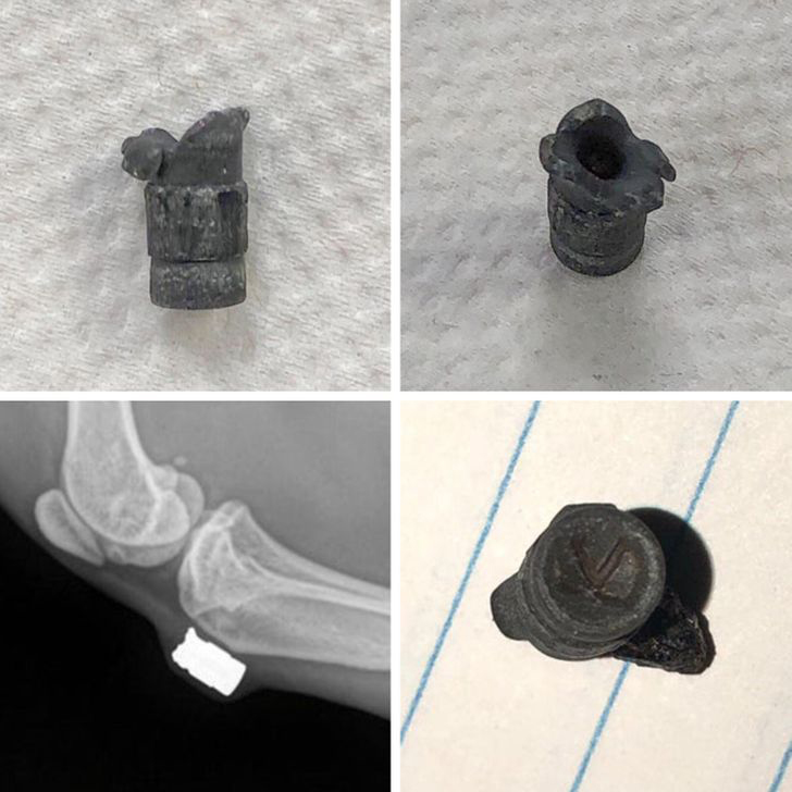 Удивительно, что эта кошка жива, ведь это пуля 22 калибра. Судя по деформации пули и по тому, что животное осталось вживых, скорее всего, пуля прошла через что-то перед тем, как попала в кошку.
