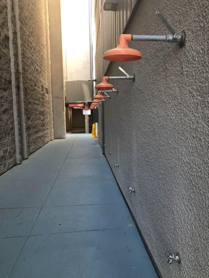 Это специальный аварийный душ для экстренных ситуаций. Например, его используют, если на человека попали какие-то опасные химикаты. Или если какое-то лабораторное исследование вышло из под контроля.