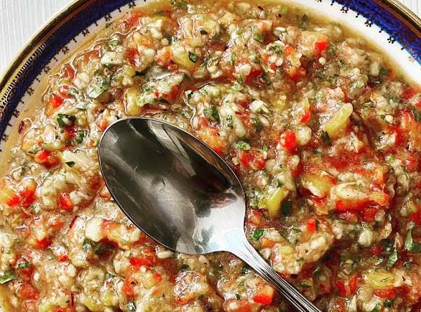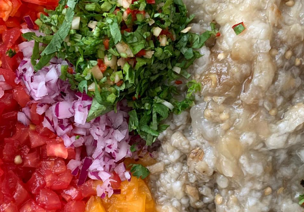 По словам шефа, самое важное в этом рецепте – это запечь баклажаны, ведь здесь важно именно "сжечь" их. Можно использовать газовую конфорку, духовку или сковороду-гриль. Однако лучше всего это сделать на мангале – аромат подгоревших баклажанов сделает эту икру самой вкусной.