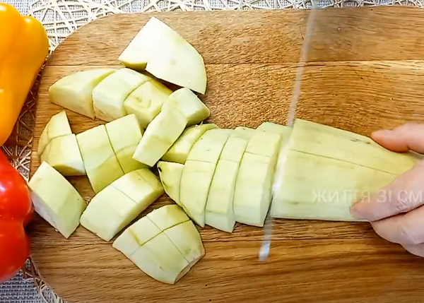 Такую же процедуру проводим и для кусочков перцев.