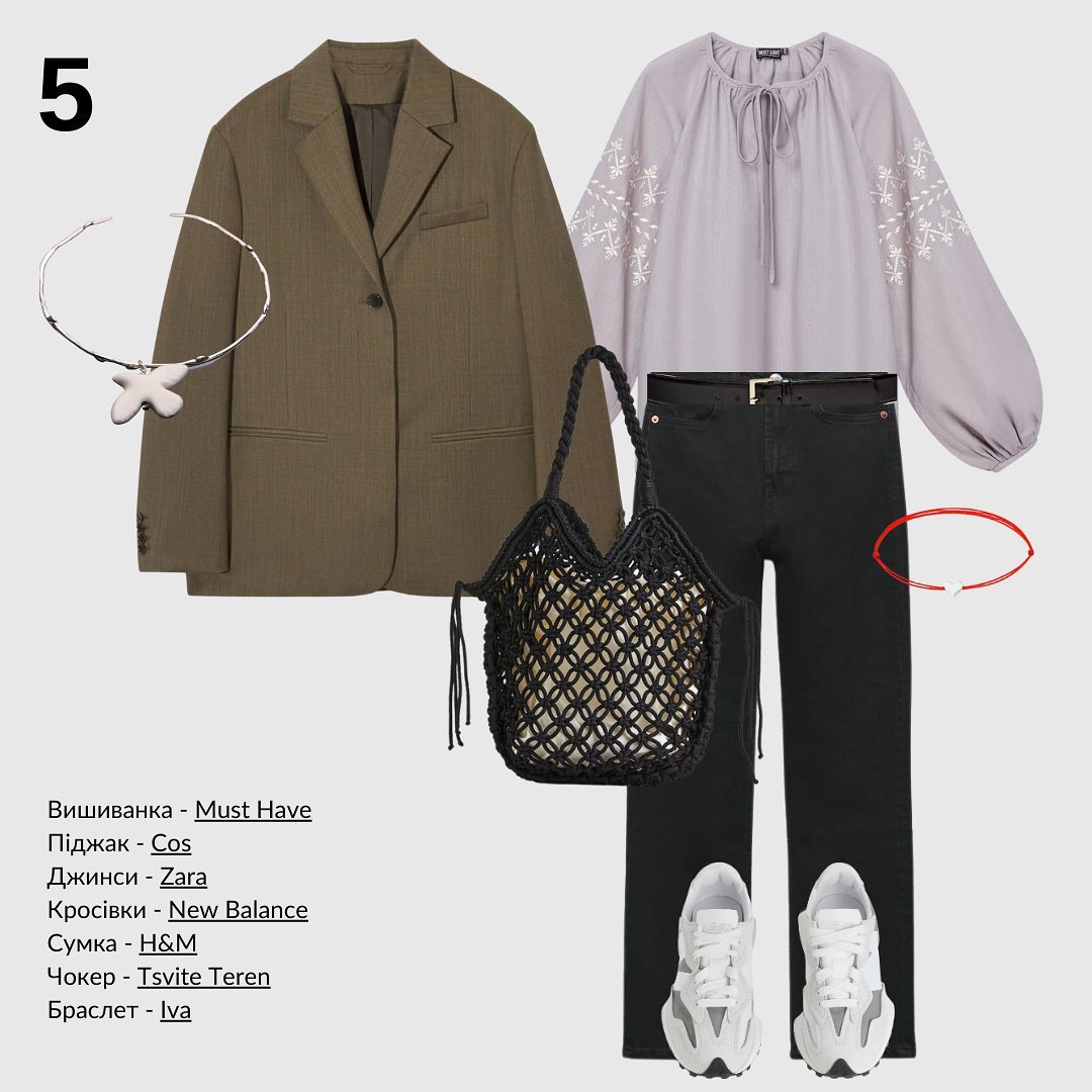 Идея соединить вышитую сорочку с пиджаком впервые пришла классику украинской литературы Ивану Франко - именно в таком виде писатель изображен на 20-гривневой купюре. Сегодня этот тренд популярен и среди женского пола, поэтому смело комбинируйте вышиванку с пиджаком или жакетом. Кроссовки станут отличным дополнением образа.