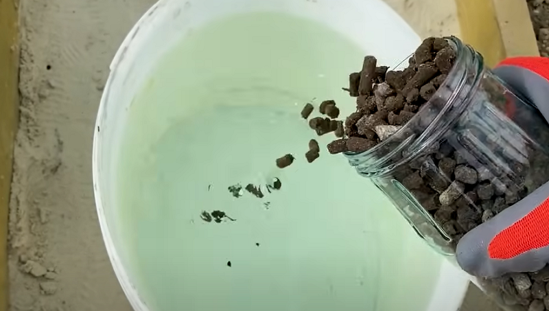 "Сейчас в продаже в садовых магазинах есть сухой куриный помет. Для приготовления удобрения из него понадобится всего одна литровая банка гранулированного помета, которую нужно залить 10 л воды. Всего за два часа гранулы растворятся, далее мы все перемешиваем и готовим удобрение из расчета 0,5 литра настоя на 10 л воды. Такой куриный помет более концентрированный и я выливаю всего один литр готовой подкормки под куст кабачков", – рассказал фермер.