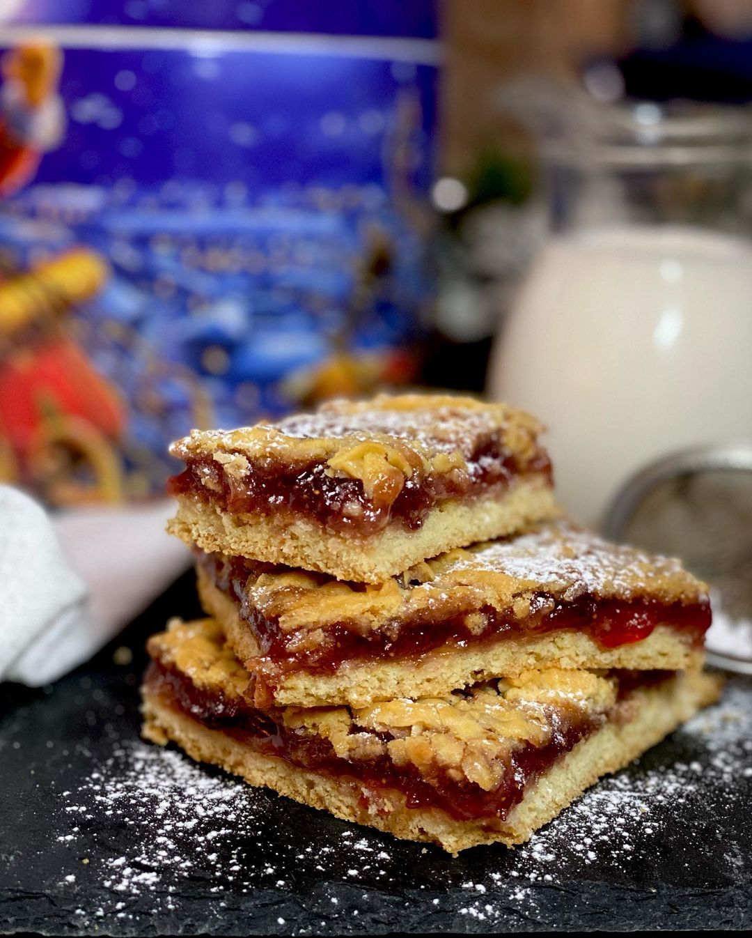 Ингредиенты: мука (420-430 г), яйца (2 шт.), масло сливочное (200 г), разрыхлитель (10 г), ванильный сахар (10 г), сахар (100 г), соль (щепотка), густое варенье (0,5 л).