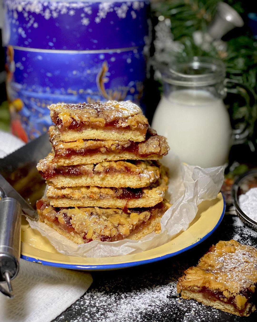 Поставьте в разогретую духовку и выпекайте 25-30 минут при температуре 180 градусов. Достаньте тертый пирог, остудите и нарежьте квадратиками.