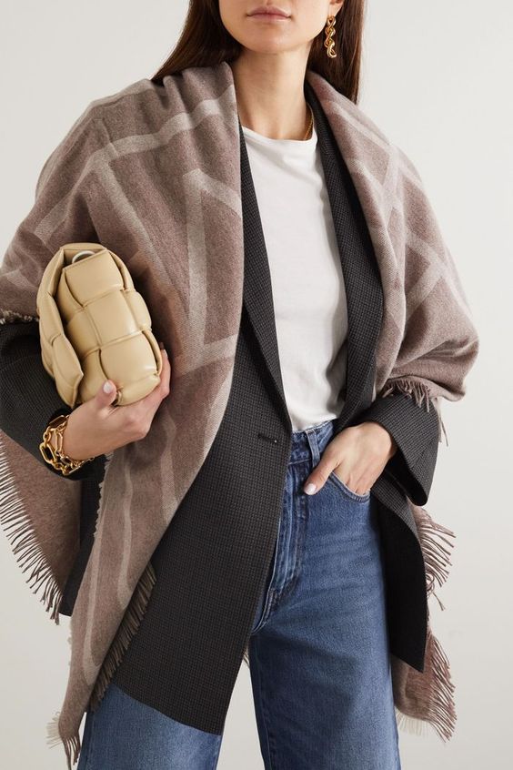 Также вы можете просто накинуть шарф на шею, оставив оба его конца свободно обрамлять ваше тело. Такой способ идеально подходит для широких и длинных шарфов с бахромой.