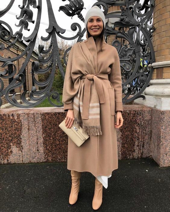 Также модные блогеры придумали оригинальный способ стилизации шарфа-снуда. Его носят поверх пальто на плечах, защищая от ветра и холода не столько шею, сколько всю грудь целиком.