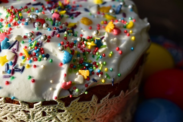 Через 10 минут глазурью можно покрывать остывшие паски. Сразу же, пока она не застыла, украшаем их посыпкой.