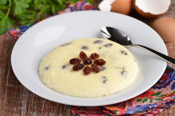 Ингредиенты: творог 9% (150 г), яйцо (1 шт.), сахар (2 ч. л.), мука (1 ч. л. с горкой), изюм (1 ст. л.).