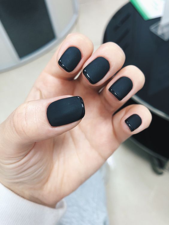 Если вы любите однотонное покрытие, сделайте простой черный маникюр, закрепите его матовым топом. Затем поверх него сделайте тонкую полоску на кончике и покройте ее глянцевым топом – у вас получится оригинальный французский маникюр.
