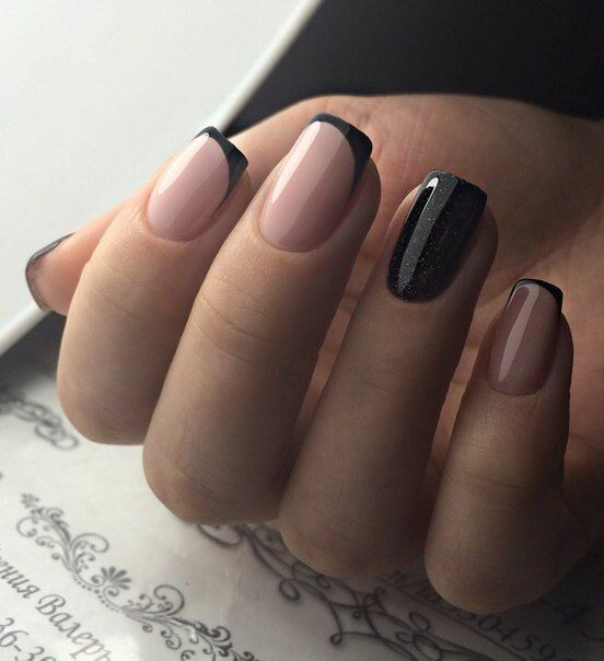 Тем модницам, которые привыкли к бессменной классике, советуем сделать оригинальный френч с черным кончиком, а один ноготь покрыть черным оттенком полностью.