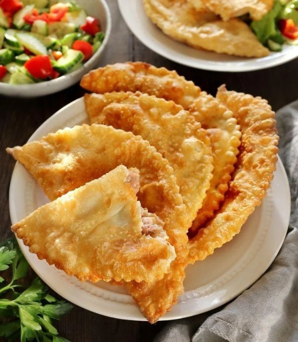 Подаем аппетитные чебуреки к столу и наслаждаемся вкусом.