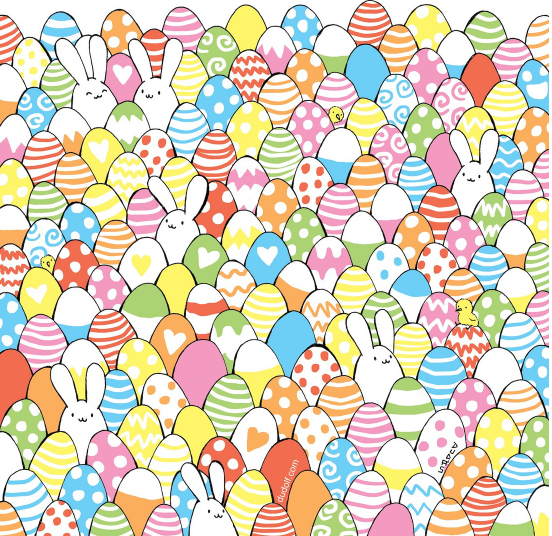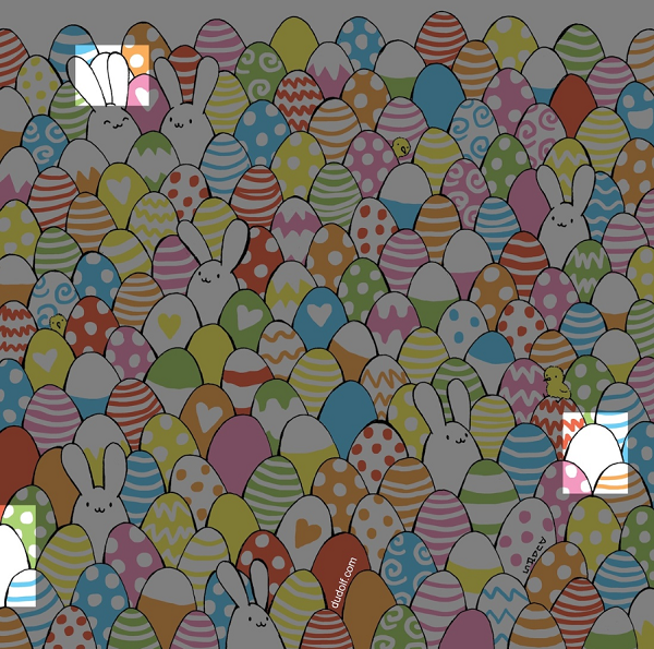 theLime предлагает сделать зарядку для ума и найти на яркой пасхальной картинке известного автора головоломок Гергея Дудаша три белых яйца за 11 секунд.