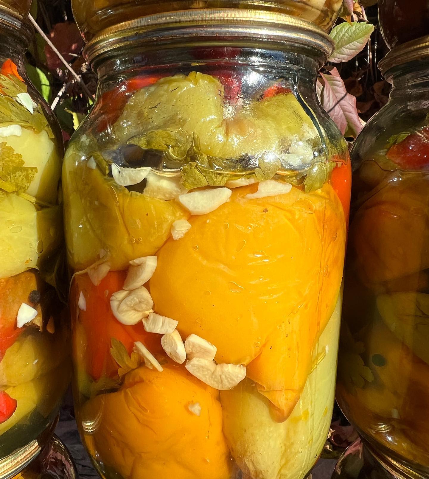 Ингредиенты на банку 1 л: болгарский перец (4-5 шт.), соль (1 ч. л. с горкой), сахар (40 г), уксус (40 мл), чеснок (2 зубчика), растительное масло, на котором жарился перец (2 ст. л.).