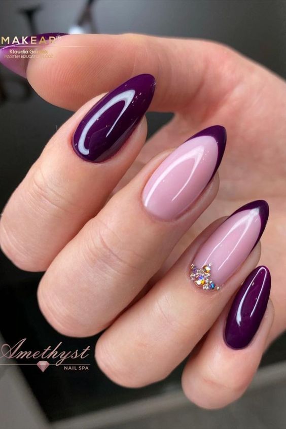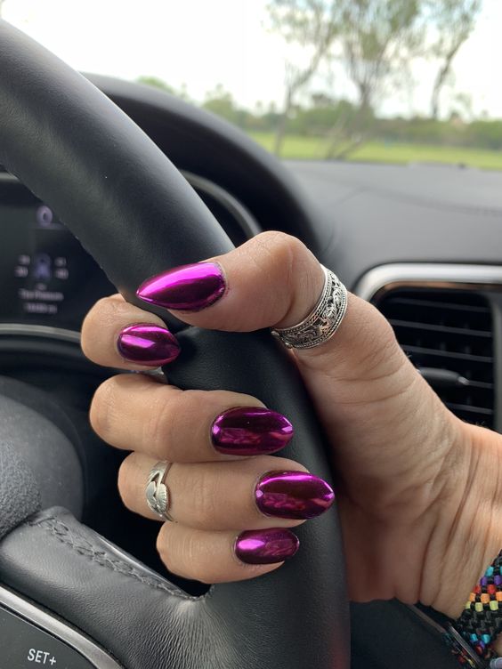 Насыщенный фиолетовый оттенок красиво будет выглядеть как на коротких, так и на длинных ногтях.