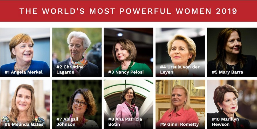 Первую тройку рейтинга закрыли экс-глава МВФ Кристин Лагард и первый в истории США спикер Палаты представителей Конгресса Нэнси Пелоси. В десятку вошли первая женщина-глава Европейской комиссии Урсула ван дер Лейен, директор General Motors Мэри Барра и гендиректор крупнейшей оборонной компании в мире Lockheed Martin Мэрилин Хьюсон.