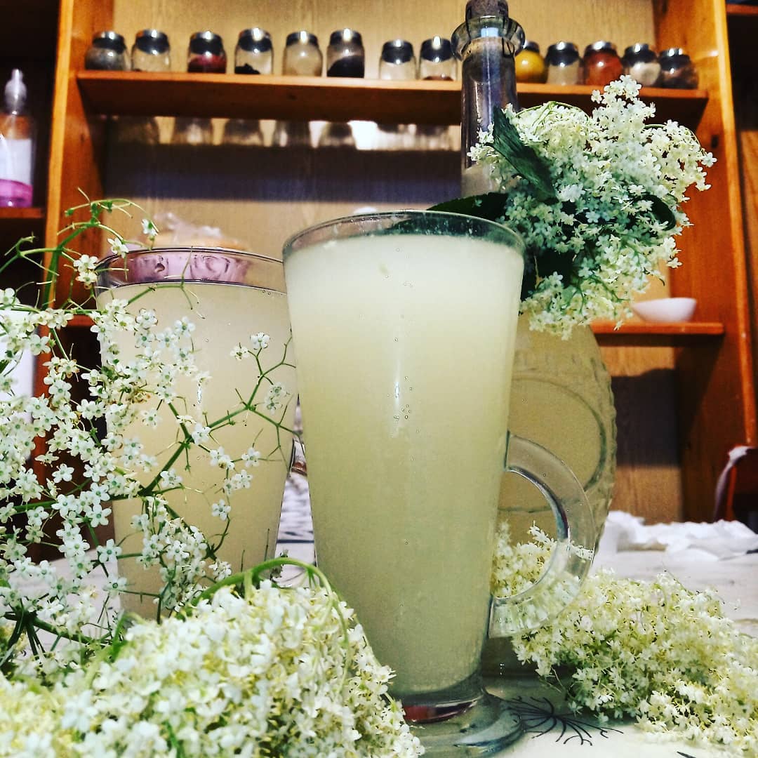 Ингредиенты: соцветия бузины (40 шт.), сахар (1 л банка), лимонная кислота (1 ст. л.), вода (10 л).