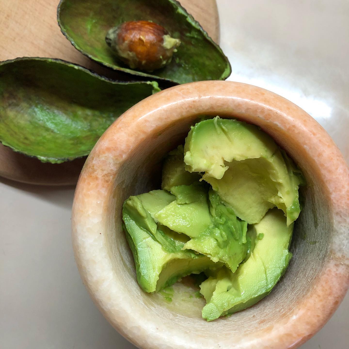Рекомендуем готовить соус в ступке, так выходит в сто раз вкуснее, ведь тогда авокадо дает больше жиров.Если ступки нет, то можно просто измельчить вилкой или толкушкой для пюре.