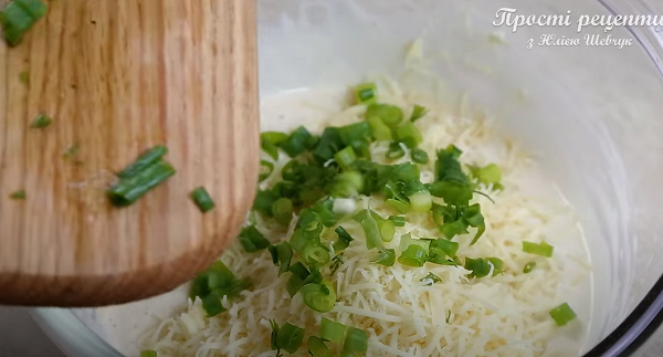 5. К тесту добавляем натертый сыр. "Чем больше сыра, тем вкуснее", - советует блоггер.