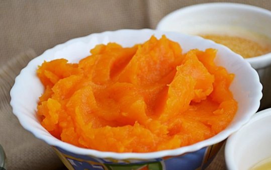 Охлажденную тыкву отделяем от кожуры и измельчаем блендером на однородную массу (можно растолочь как картофель на пюре или перетереть через мелкое сито).