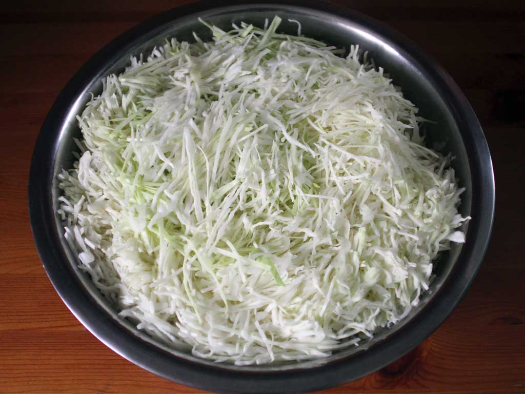 Чтобы процесс ферментации (квашения) произошел вовремя – за 3-4 дня – капусту нужно тонко нашинковать и обеспечить ей теплую среду.