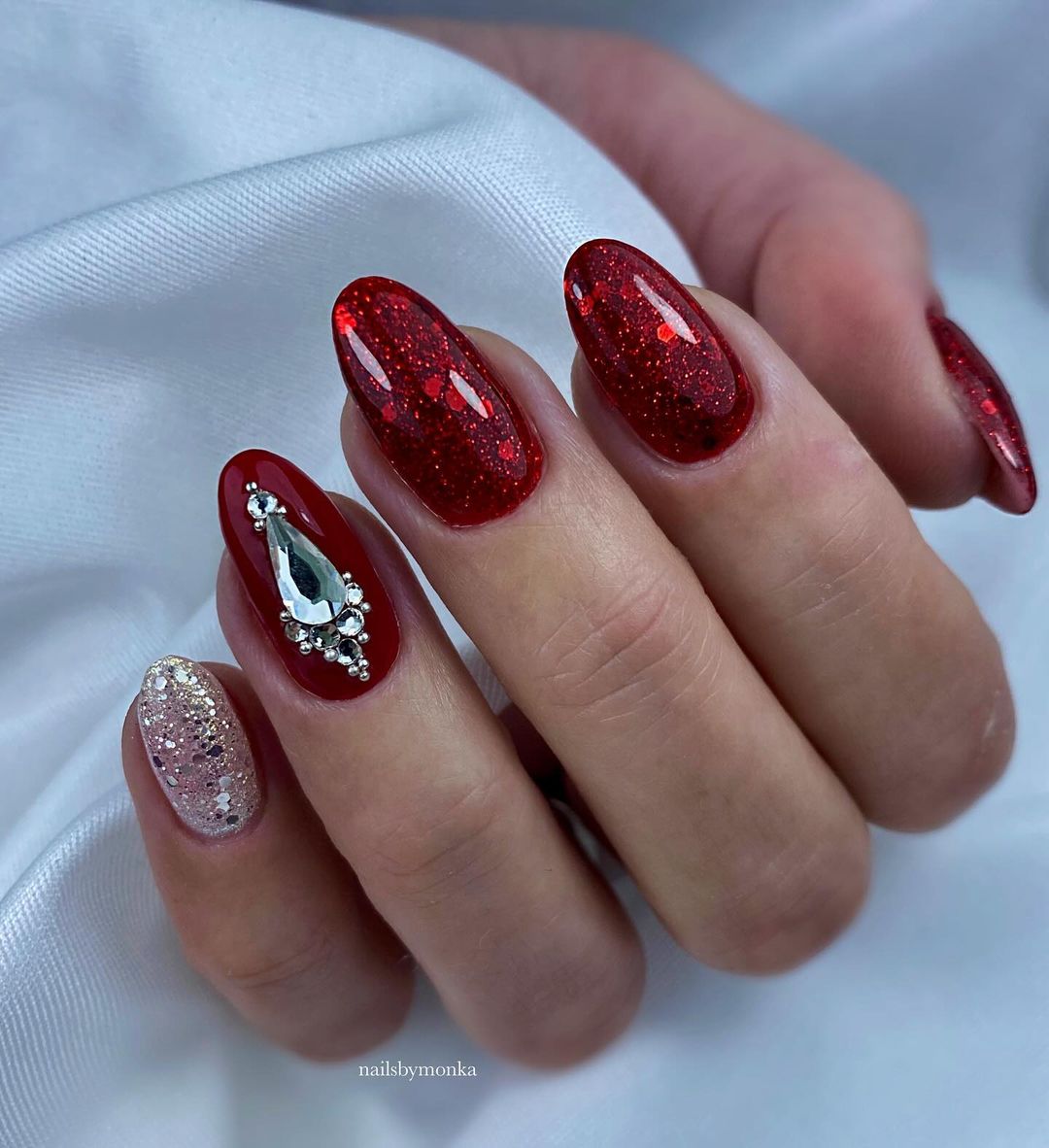 Накрасьте ногти классическим красным или более темным бордовым лаком, который всегда является популярным выбором на День святого Валентина. Красный - цвет любви, страсти, близости и, к тому же, один из главных трендов 2024 года.