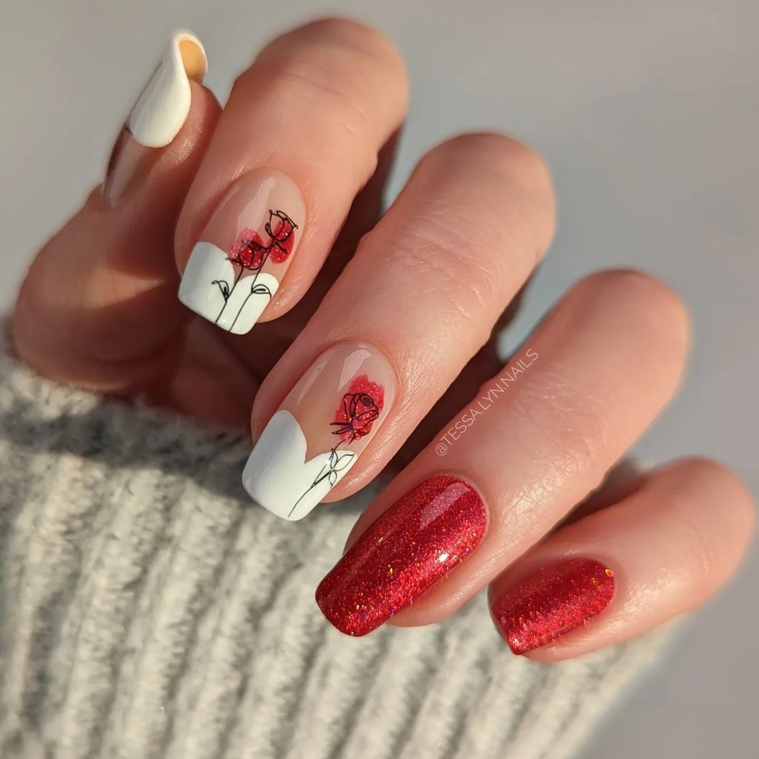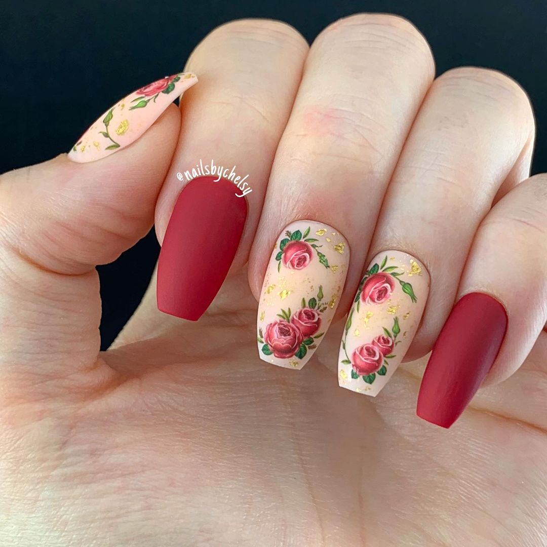 Добавьте нежные розы или другие цветы в дизайн ногтей, чтобы придать ему нотку элегантности на День святого Валентина-2024.